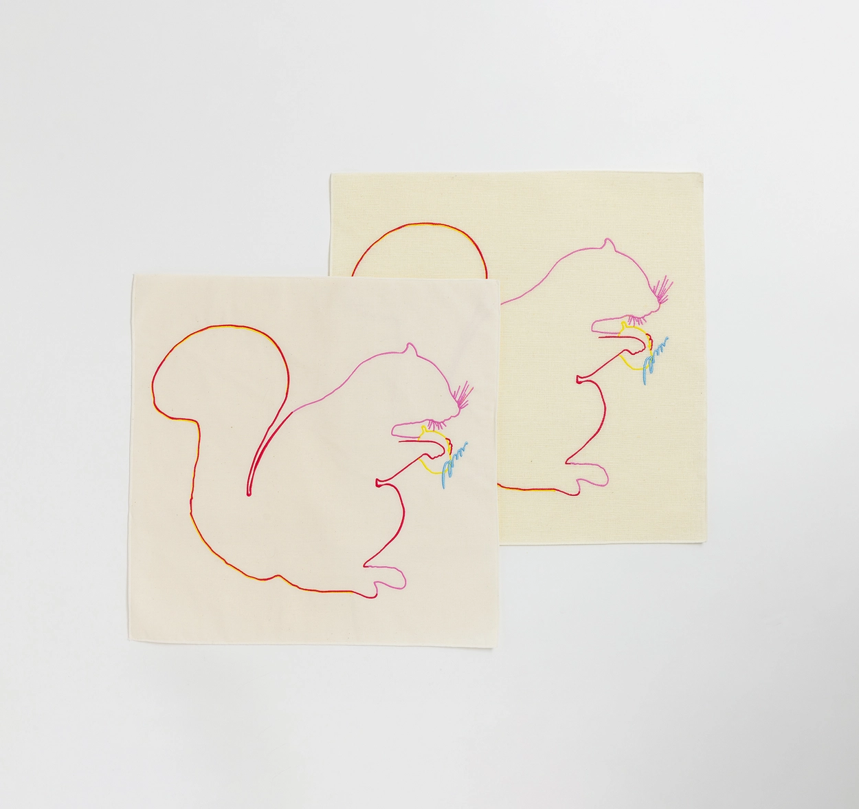 도토리 수확을 끝낸 다람쥐 카드를 색을 입혀 수놓은 패브릭 포스터