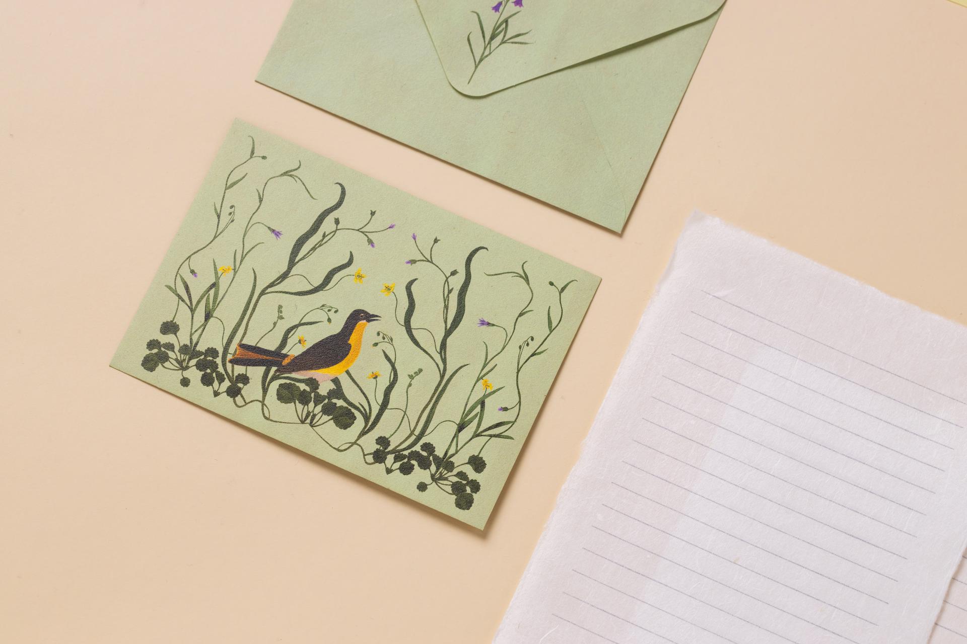 담긴 편지지 세트입니다. 여러 종류의 새와