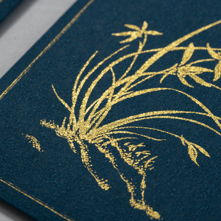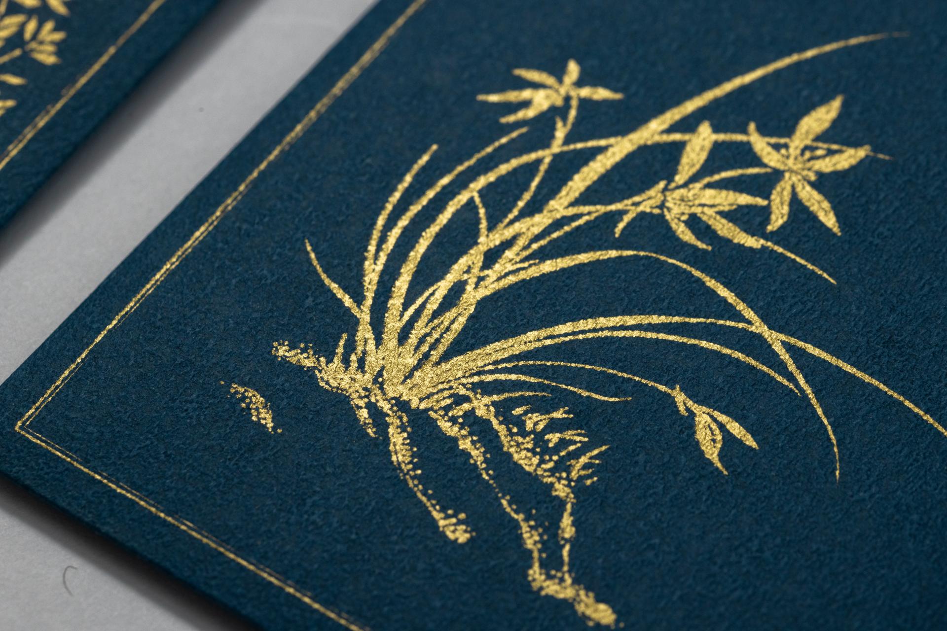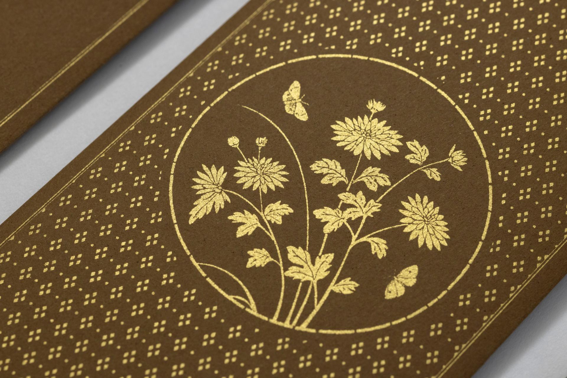 옷감을 닮은 종이에 고운 금빛 안료로