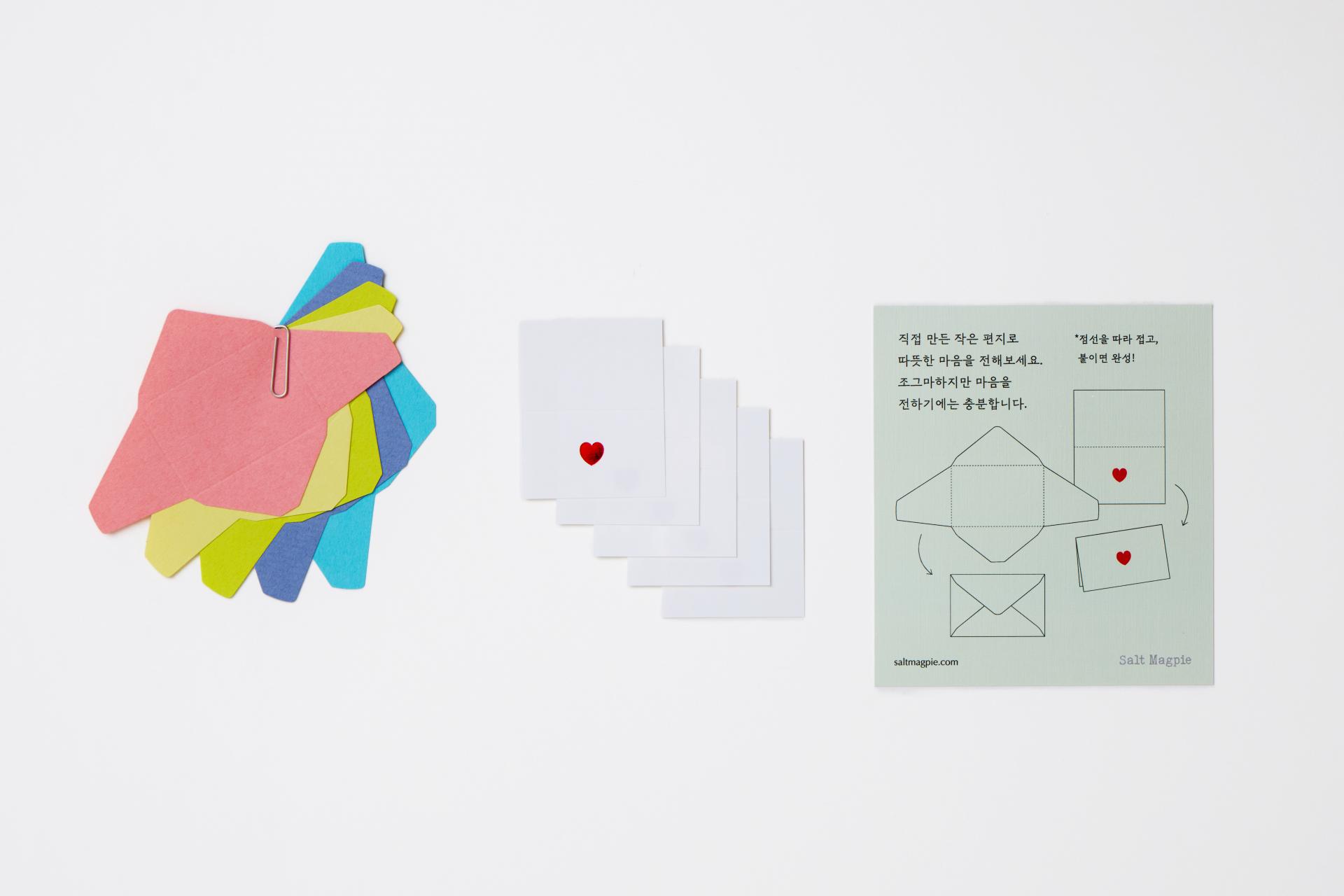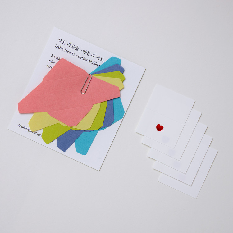'작은마음들-만들기 세트'는 시즌별로 다른 색상과 질감의 종이로 만든 아주 작은 봉투와 카드 세트입니다.