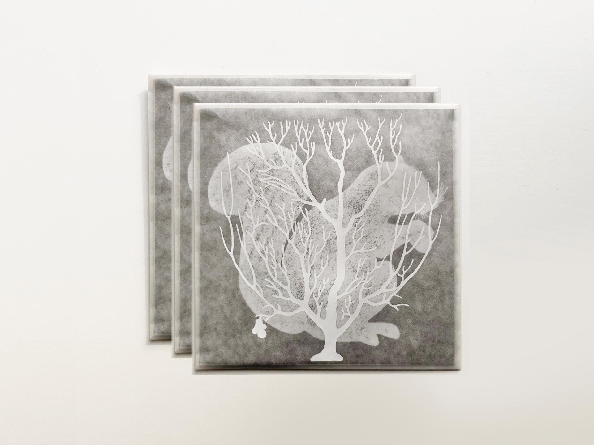 식물과 동물의 실루엣이 겹쳐 하나의 풍경을 만들어 냅니다.