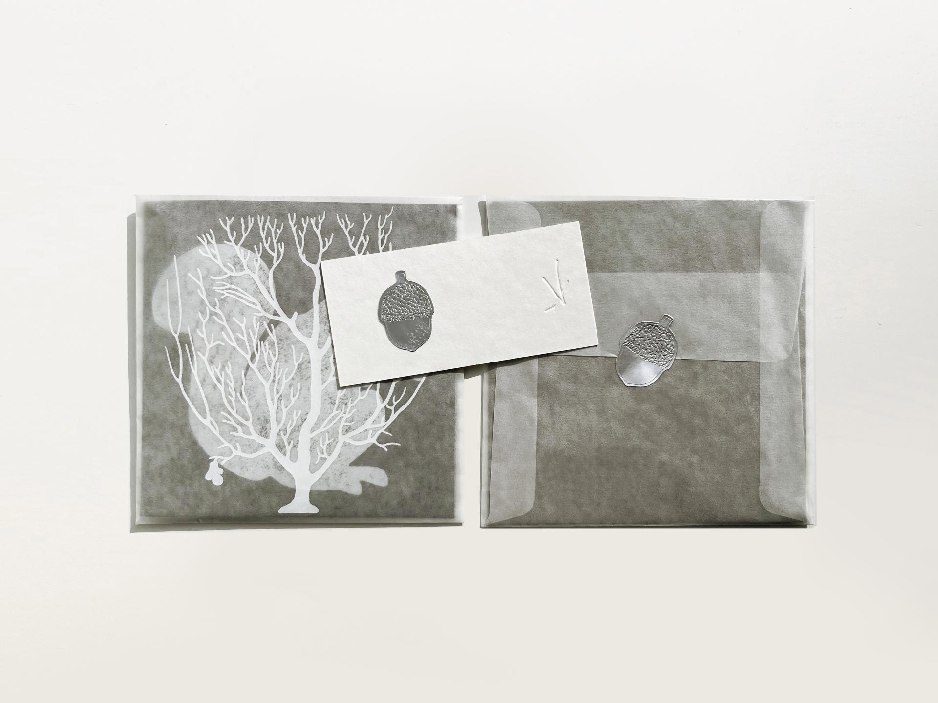 봉투 겉 면에는 잎이 다 떨어진 나무의 마지막 잎새가 그려져 있습니다.